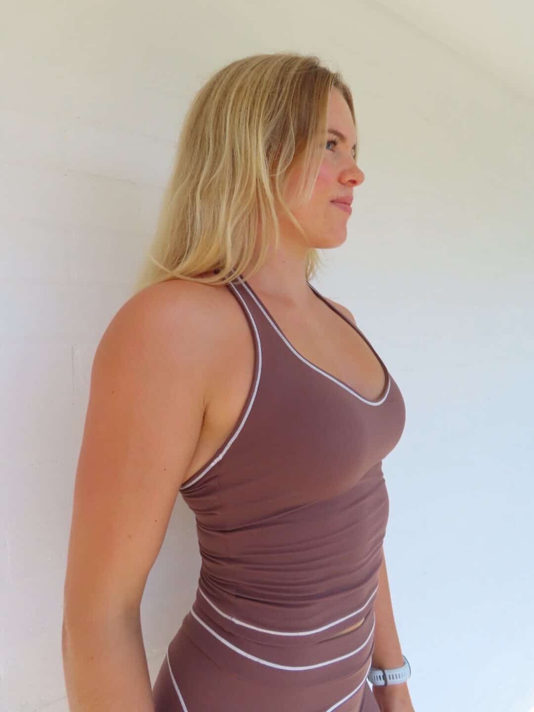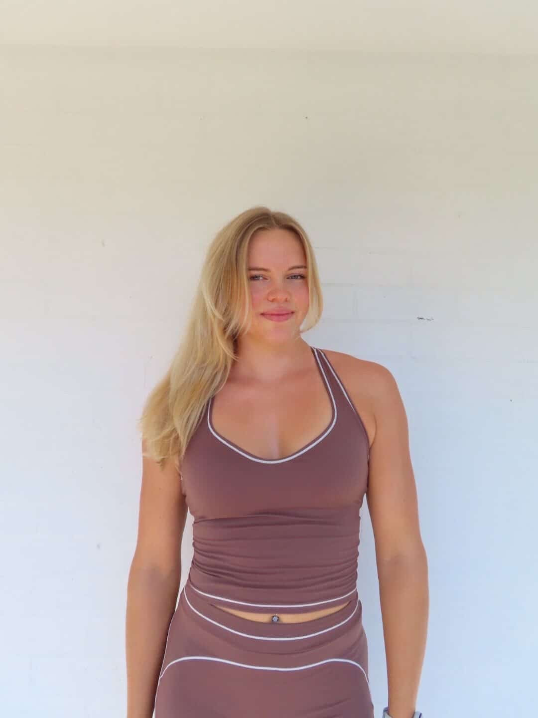 Finished with clean contrast piping and a streamlined design, The Soft Flex Tank delivers both performance and elevated everyday style.